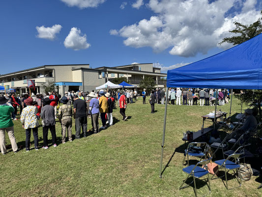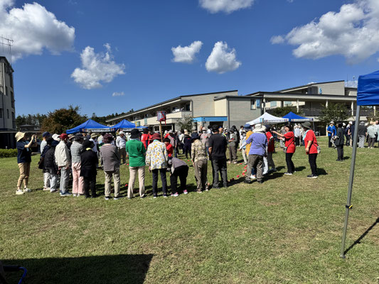 この運動会は、地域の社協の皆さまと、近隣の二つの保育所、そして南三陸高校の生徒さんたちが協力して行う、ゆったりとした温かな催しです。競争ではなく、誰もが安心して楽しめる工夫が凝らされていて、会場には和やかな笑顔が広がっていました。午前中のプログラムを終えると、皆でお弁当をいただき、心地よい時間を過ごしました。